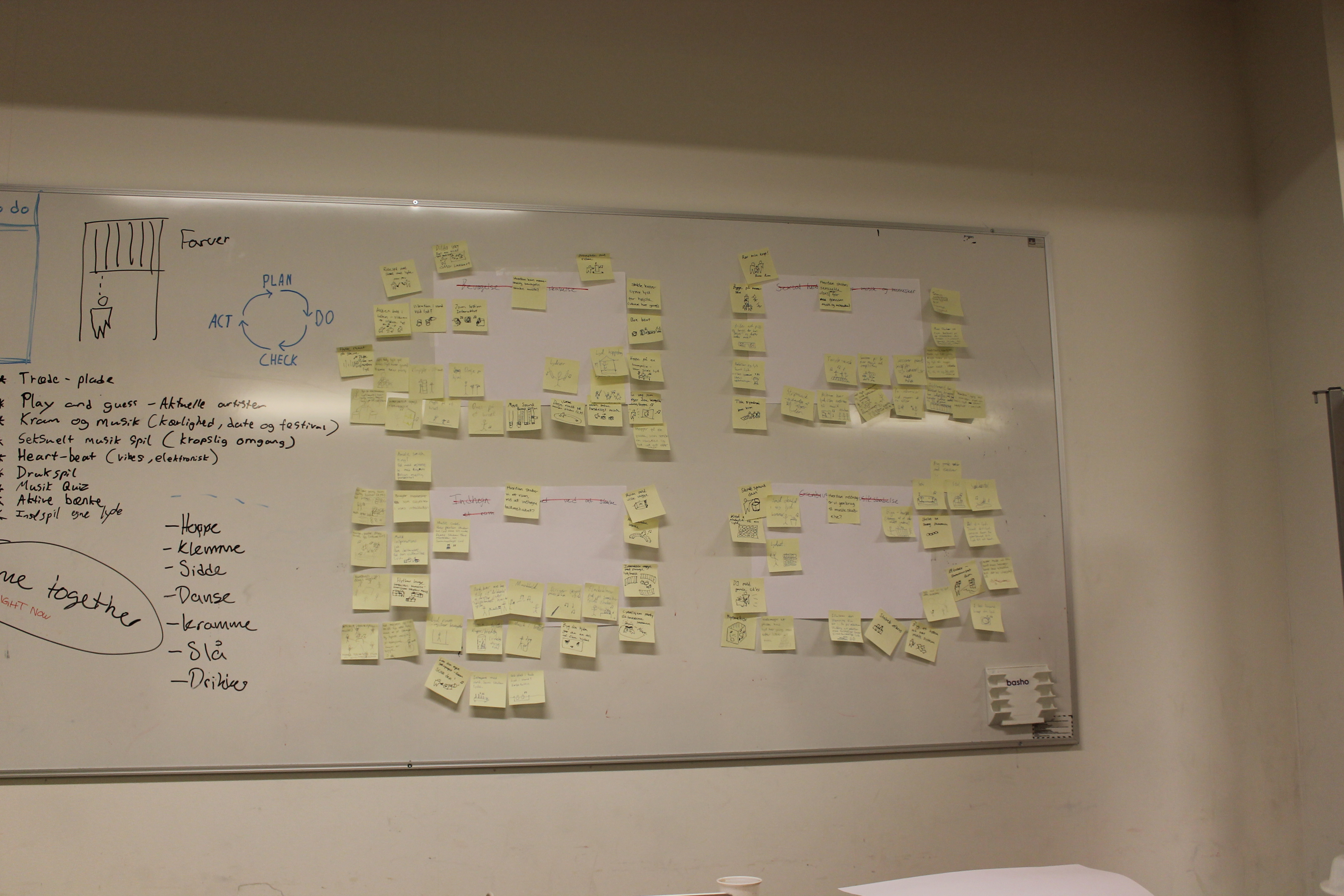 Færdig med brainstorm. 89 idéer bliver det til, herfra skal 3 vælges.