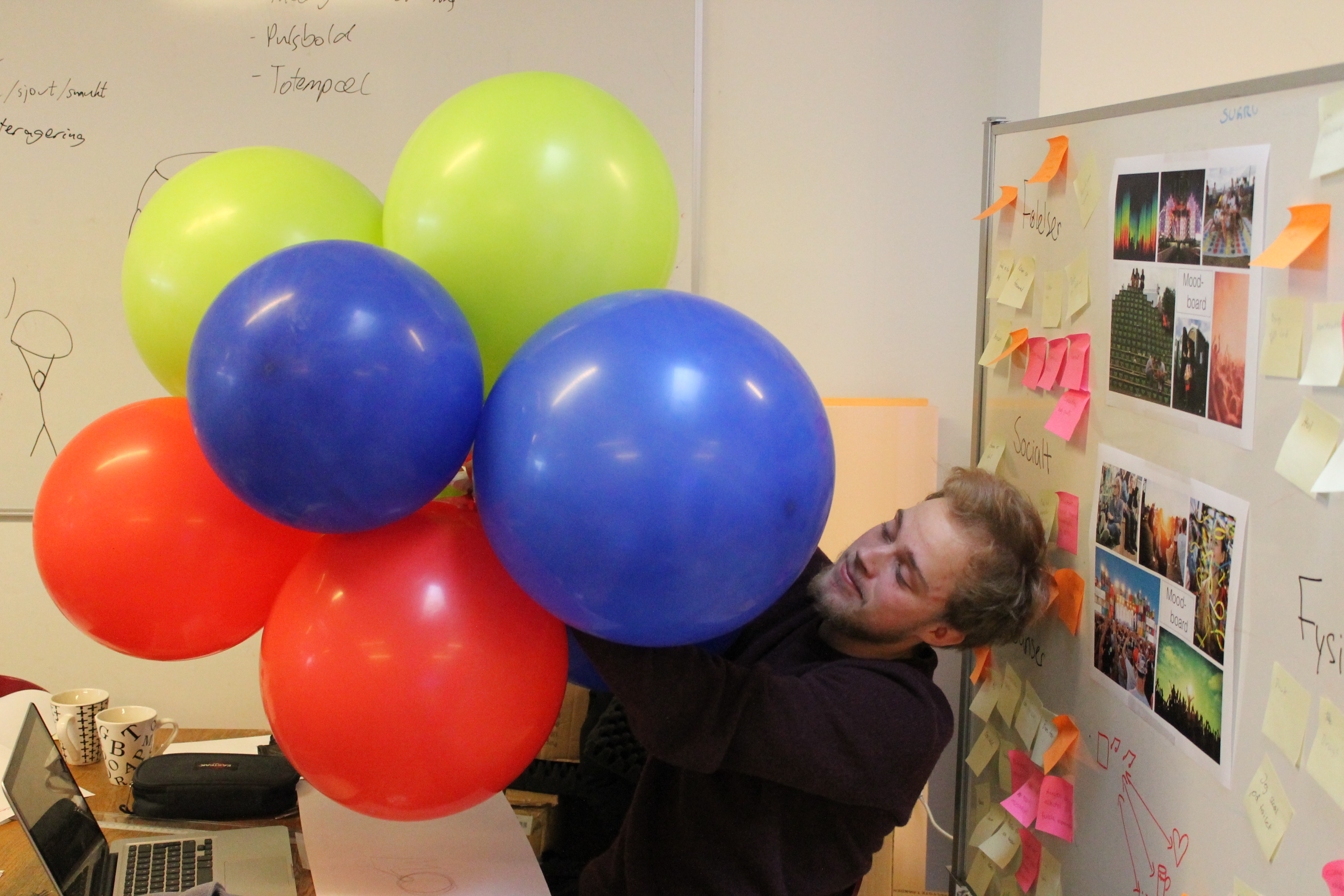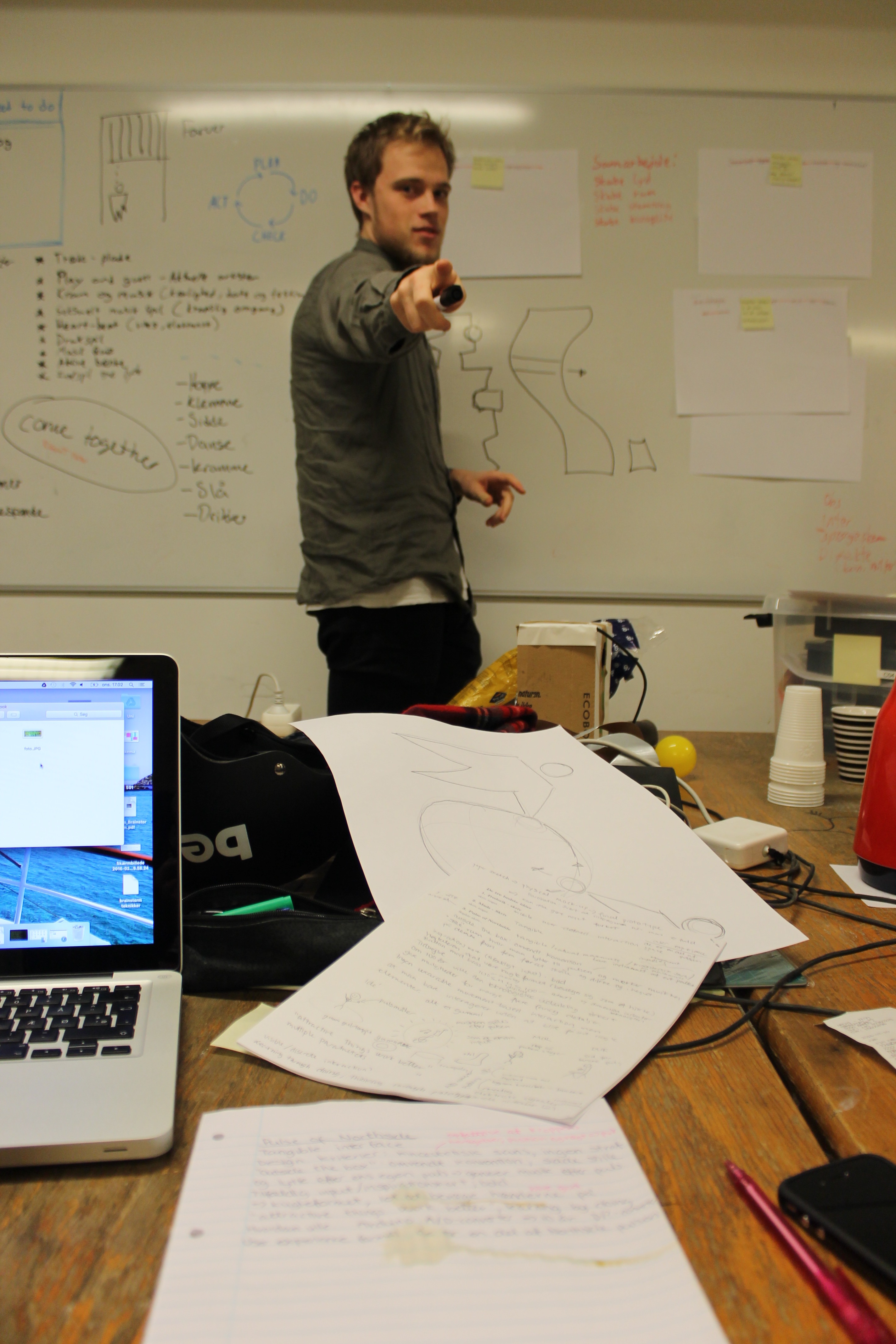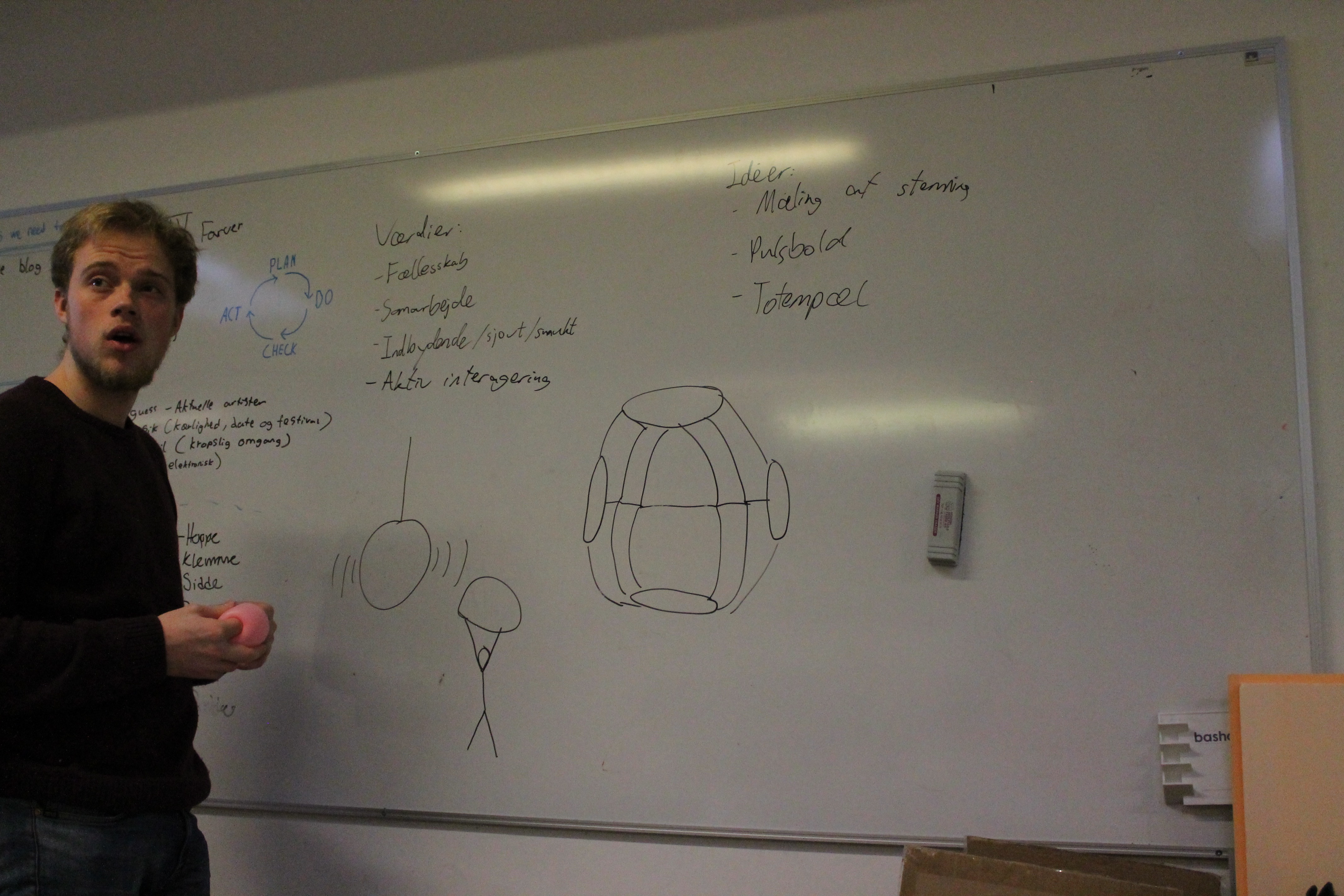 Mads løfter pegefingeren overfor vores idéer. Husk at ingen idéer er dårlige under brainstorming!