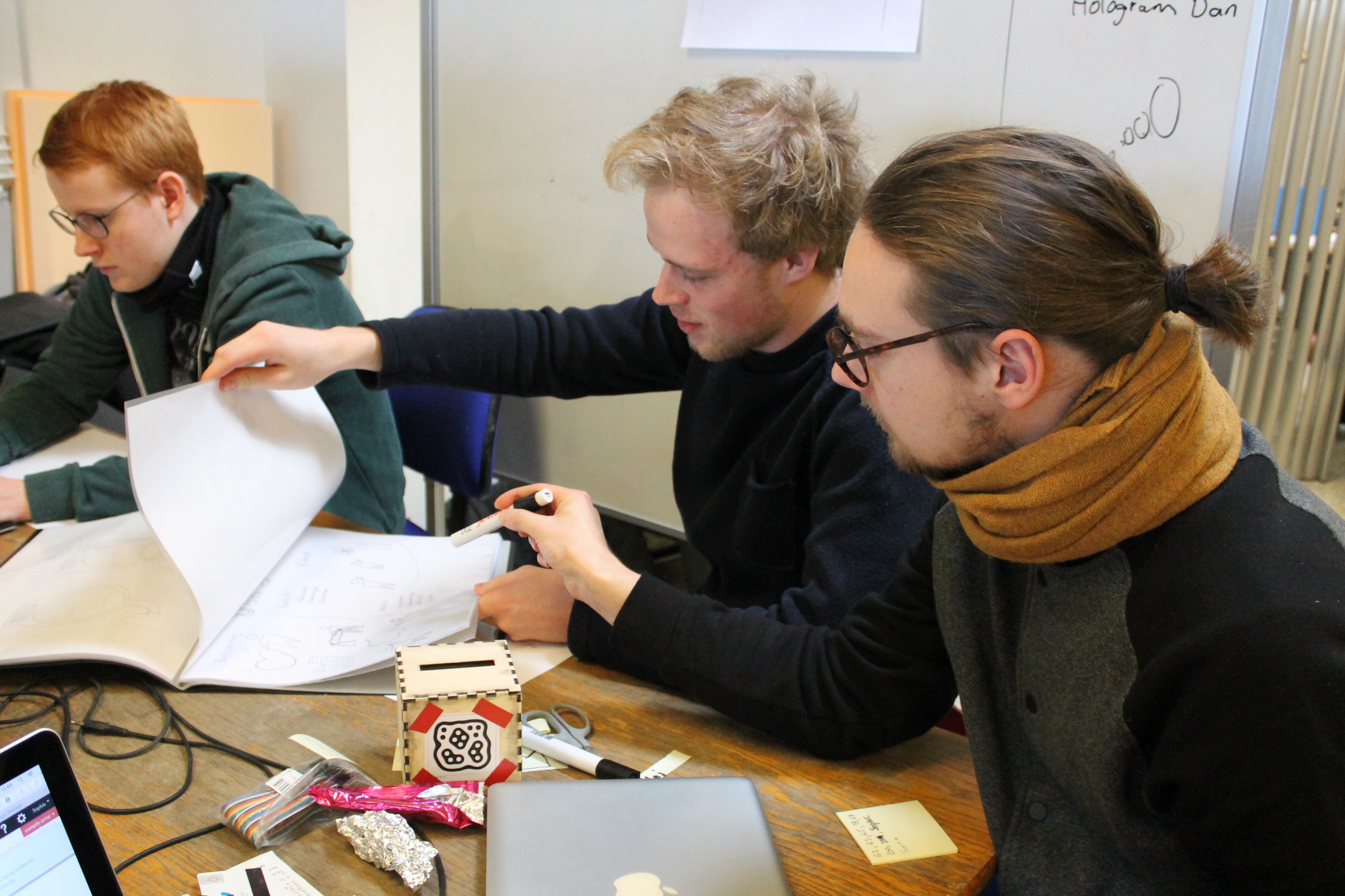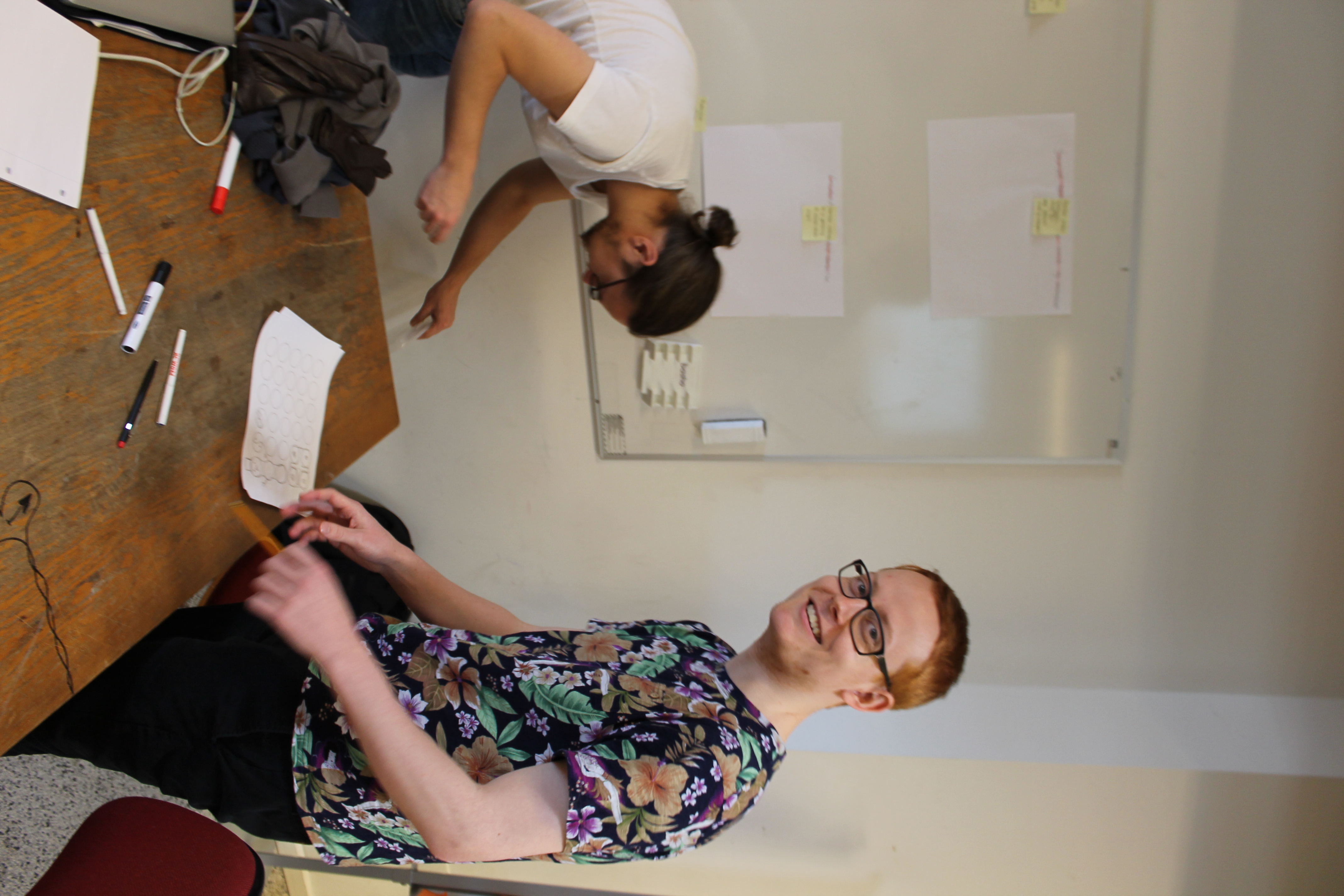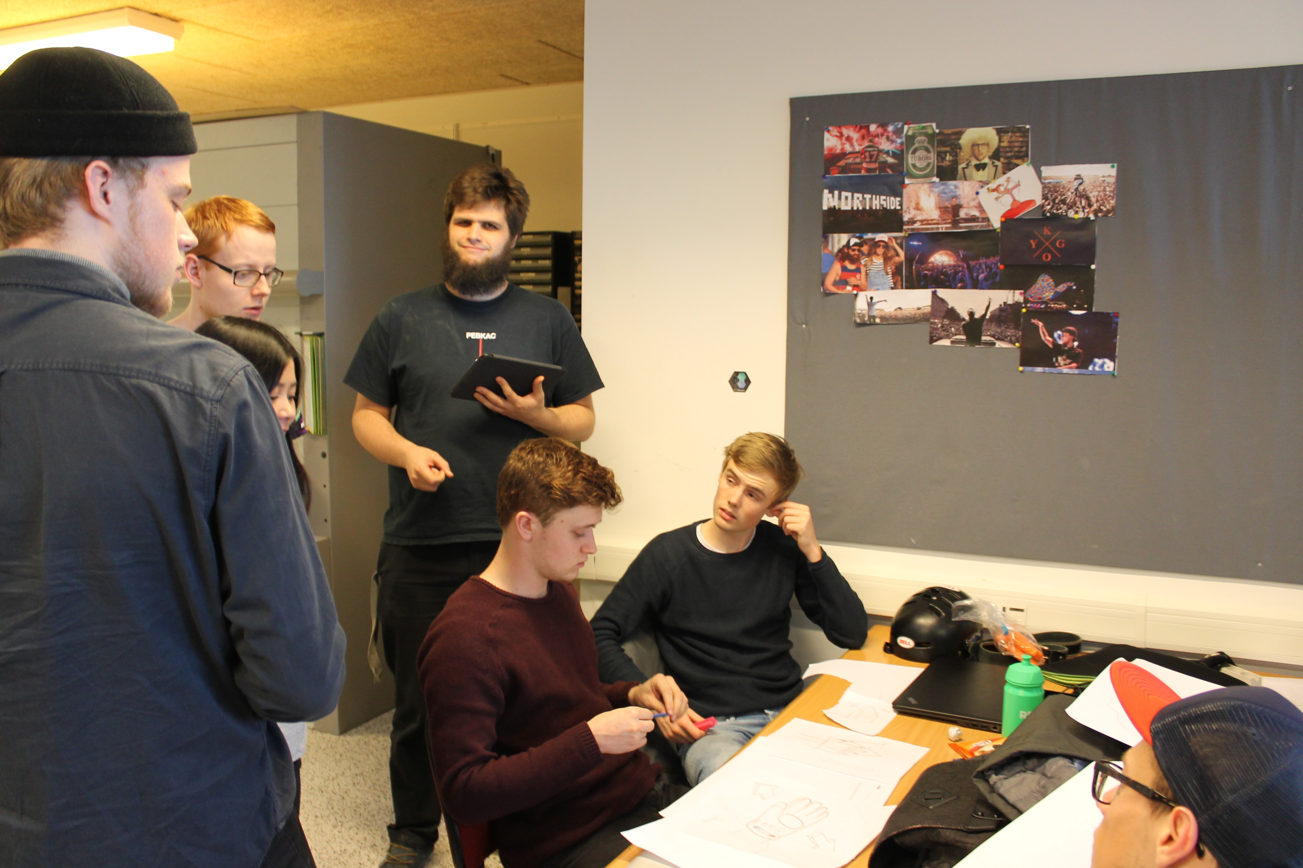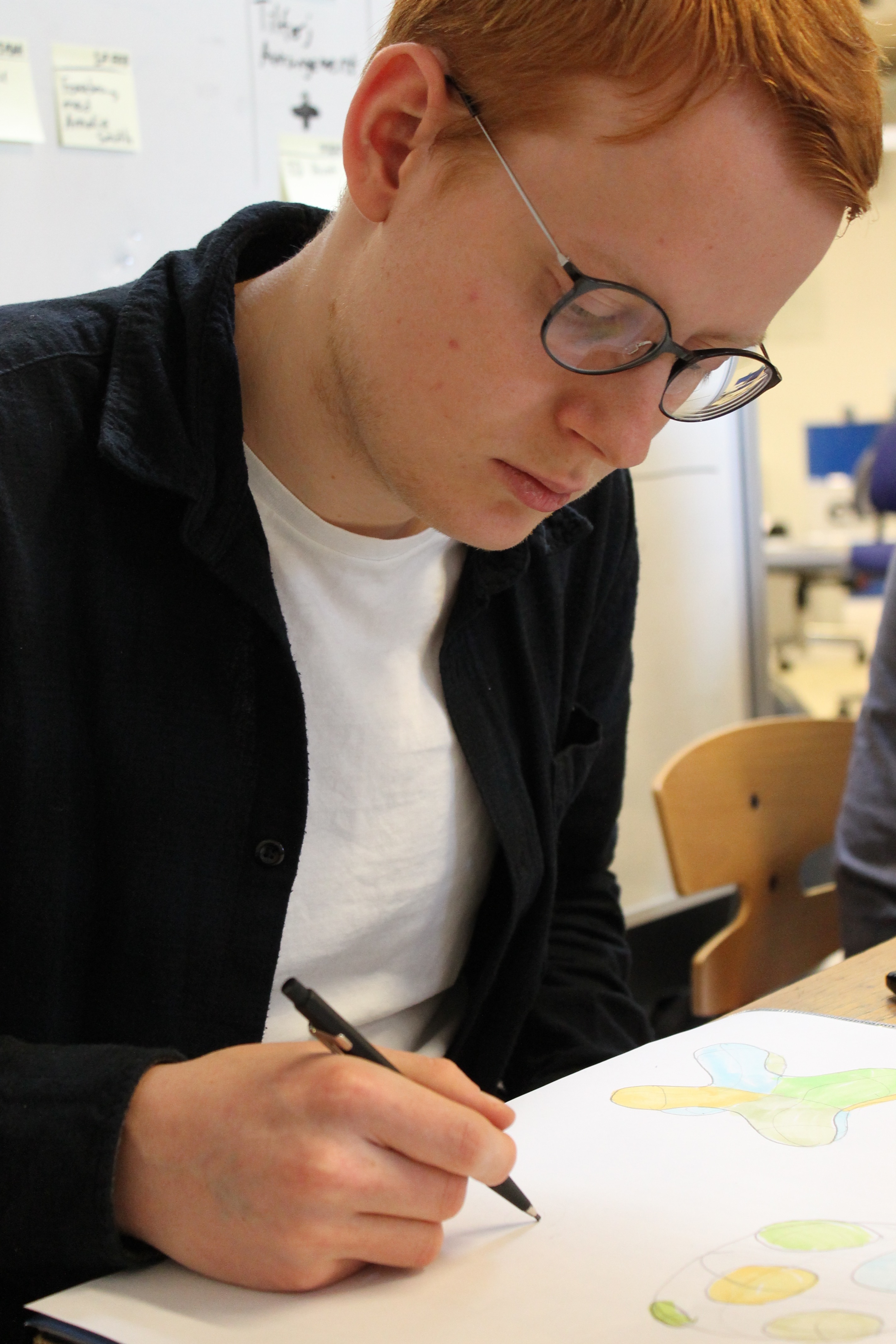 Mads løfter pegefingeren overfor vores idéer. Husk at ingen idéer er dårlige under brainstorming!