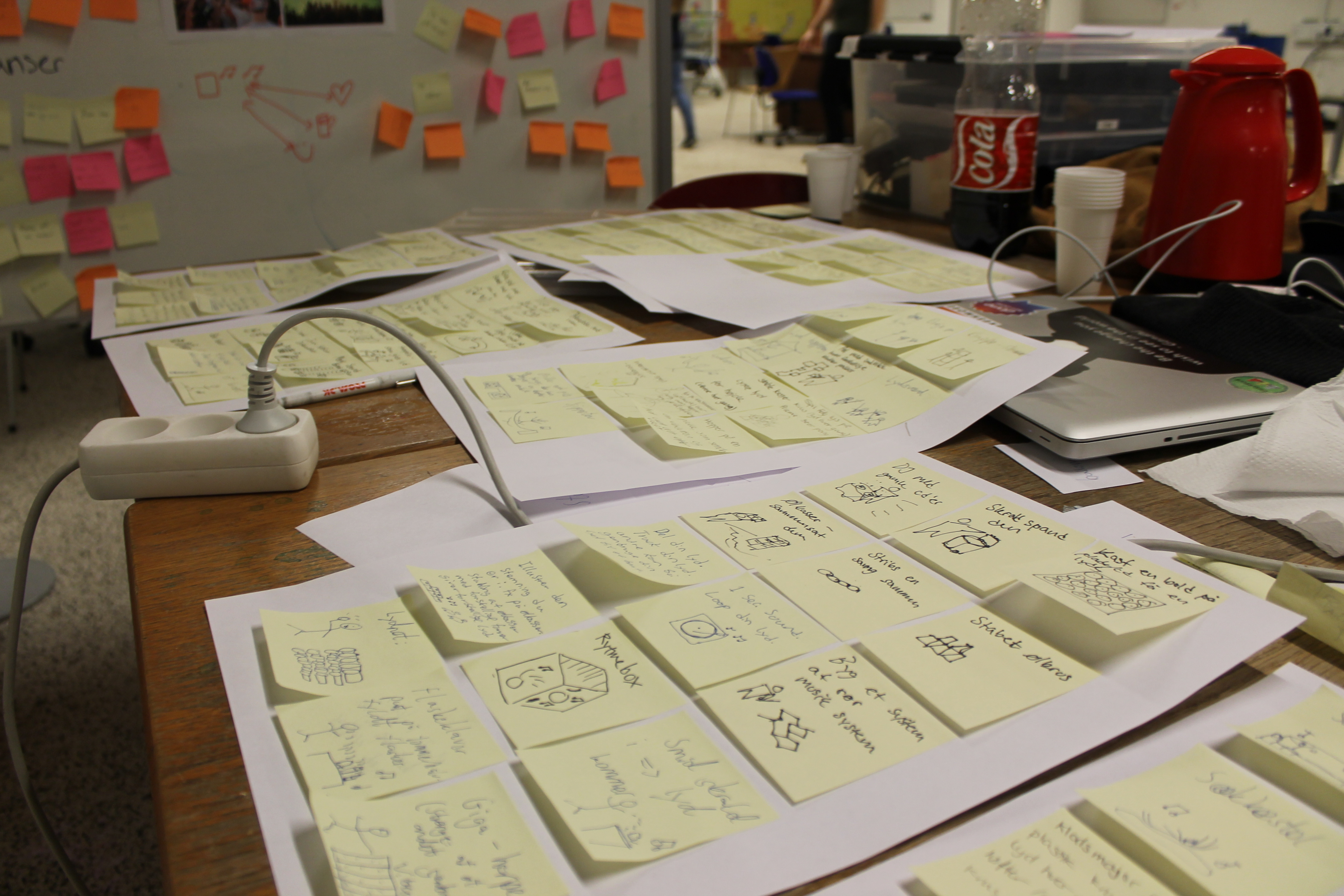 Færdig med brainstorm. 89 idéer bliver det til, herfra skal 3 vælges.